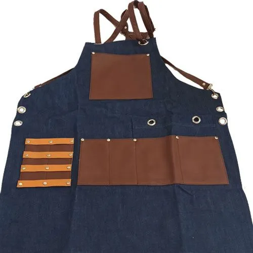 Ποδιά Barber με θήκες τοποθέτησης των εργαλείων σε μπλέ ρουά