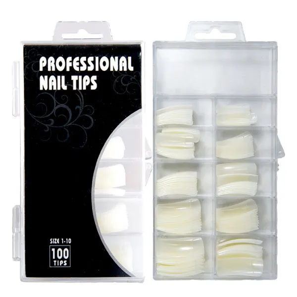 Κλασσικά tips σε φυσικό χρώμα με κανονική θέση επικόλλησης. Η συσκευασία περιέχει 100 tips σε δέκα διαφορετικά μεγέθη.