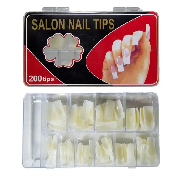 Κλασσικά tips σε φυσικό χρώμα με κανονική θέση επικόλλησης. Η συσκευασία περιέχει 200 tips σε δέκα διαφορετικά μεγέθη.